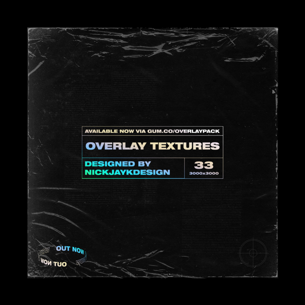 A pack of 33 overlay textures, perfect for album covers or tour posters. Including plastic wrap overlays, rough edges, dirt textures and more!